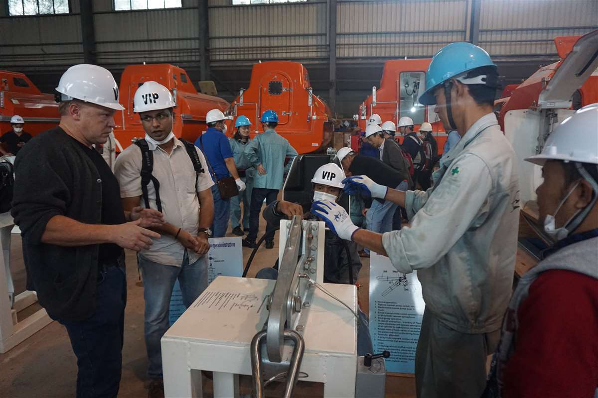 17名船舶服务精英人员来到安博官网,对厂家设备的新设计,新产品进行深层次的学习和服务训练,成为佼燕救生设备的优秀服务商,为佼燕的客户提供更优质,更专业,更及时的服务.