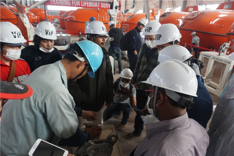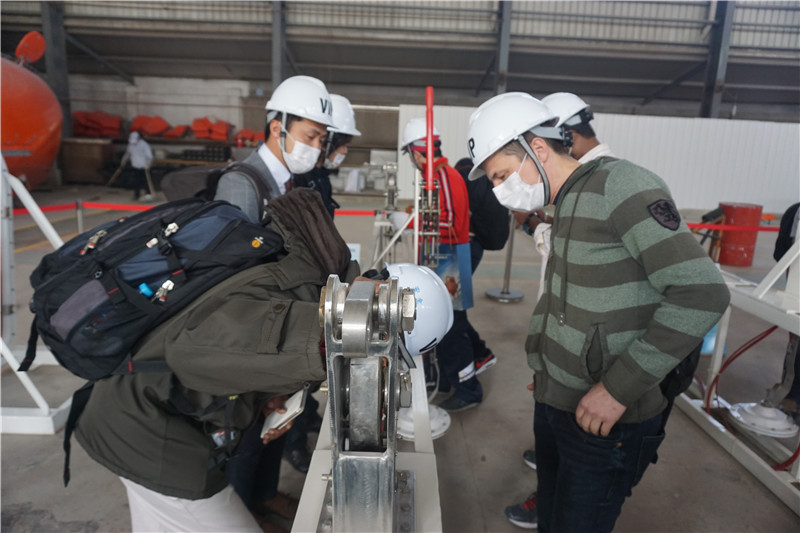 船舶服务精英人员来到安博官网,对厂家设备的新设计,新产品进行深层次的学习和服务训练,成为佼燕救生设备的优秀服务商,为佼燕的客户提供更优质,更专业,更及时的服务.